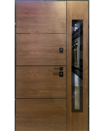 ლითონის კარი PROOF 1200*2200-L PF1.5 PARTY D + Vetro მუქი მუხა